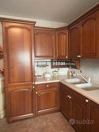 Vendo cucina in legno, realizzata su misura, con dettaglio floreale nella cappa. Molto bella e raffinata. Usata pochissimo.