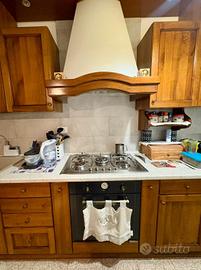 Cucina in legno in ottime condizioni, dotata di lavello, forno e piano cottura cinque fuochi, pensili, faretti luce, NON é compreso il frigo.