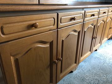 Cucina in legno vintage Misure: 340 cm lunghezza 202 cm altezza 60 cm profonfità Possibilità di acquistare in abbinamento ad altri mobili Prezzo trattabile