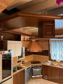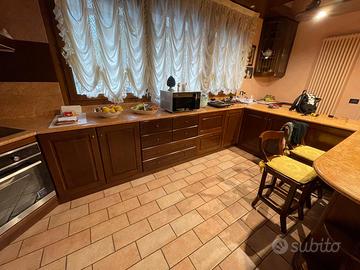 Cucina in legno con piano in marmo rosa, esclusi elettrodomestici, tenuta benissimo, disponibile per visione
