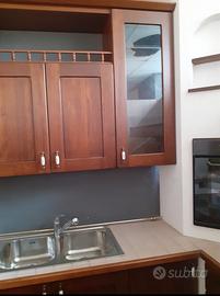 Cucina in muratura mod. Provenza in noce scuro, composizione ad angolo, dimensione L. 305