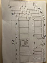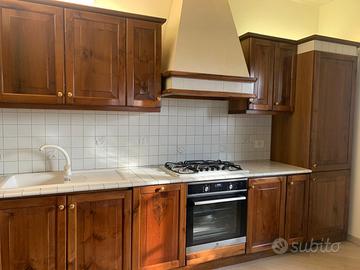 Cucina in noce nazionale con frigo a incasso Liebherr, lavastoviglie Candy Brava, piano cottura con 5 fuochi Nardi, lavello in granito bianco e cappa aspirante (prezzo trattabile)