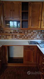 Cucina completa in noce massello, di 6 metri lineari . Frigorifero ad incasso, doppio lavello , blocco forno e fornello con cappa . Ancora in sede , pronta da smontare.