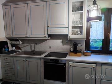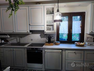 e cassettoni in palissandro, piano in quarzo, lavabo in resina per cucina in muratura.