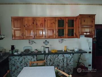 Vendo come da foto una cucina completa con forno, lavastoviglie, congelatore, lavandino e vari pensili in pino di svezia. (Il frigo non è compreso). Accetto offerte per tutto il lotto.