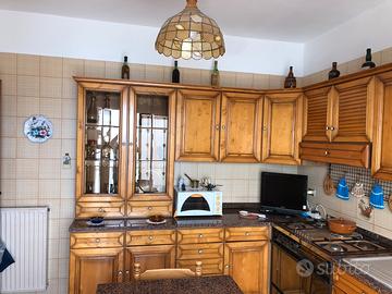 Vendo cucina componibile completa, anta in legno massello di rovere e piano di lavoro in granito da 3 cm. Completa di cucina con forno a gas e lavandino con die pozzetti e gocciolatoio. Frigo non funzionante.
