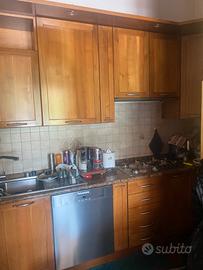 Cucina in legno di rovere ,con altezza 2,45 metri,piano in marmo altezza da piani terra 90 cm,con parti in metallo nei ripiani e cassetti,questi ultimi la parte davanti staccabile per pulire facilmente,i cassetti si possono togliere attraverso la guida in metallo,maniglie in acciaio inox,ritiro e smontaggio a carico dell’acquirente,elettrodomestici esclusi .