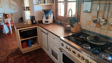 Vendo cucina e vetrina in stile contadino, con piano e lavandino in pietra Santa Fiora. No elettrodomestici (blocco cottura, frigo e lavastoviglie)