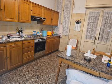 Cucina in vero Rovere con ripiano in acciaio e marmo, tavolo abbinato con ripiano dello stesso marmo e quattro sedie impagliate in perfette condizioni. Tutto in buone condizioni