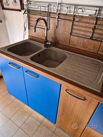 Cucina componibile color ciliegio e blu (escluso forno) in buone condizioni. prezzo trattabile.