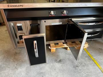 Monoblocco su misura Angelo Po, usata solo come demo in show room, prezzo di listino € 30.000,00, prezzo speciale € 14.500,00, dim. Lunghezza 210x130 larghezza, piano vetroceramica ad induzione a due cotture, due cassetti caldi fino a 100 gradi + 2 vani neutri ad anta e cassetto. Ritiro a carico dell’acquirente.