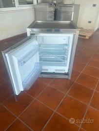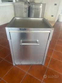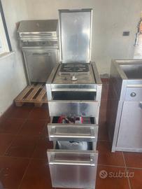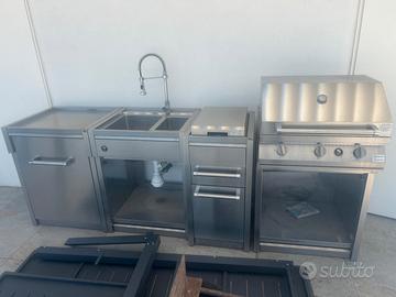 cucina completa in acciaio inox STEEL ideale per per esterni e ristoranti , composta da un frigo, una cassettiera/cucina, un lavello a doppia vaschetta con rubinetto e un Grill