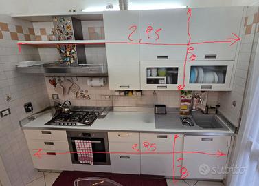 Vendesi arredo per cucina Marca VENETA Cucine . Non sono compresi gli elettrodomestici ma solo la cappa ed il lavabo. Alcuni sportelli presentano qualche difetto dovuto all'usura e per uno sportello vanno cambiate le cerniere . Lo smontaggio ed il trasporto sono a carico dell'acquirente. Contattare telefonicamente al n. 338 9957027 preferibilmente ore pasti