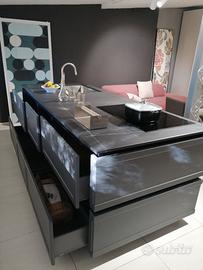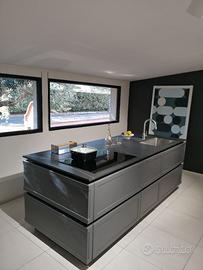 Cucina ad isola Snaidero Frame laccata cm. 256X104 , cassettoni utilizzabili lato ftontale e posteriore , con piano in quarzo nero opaco con venature passanti ad alta resistenza Planet Alley spessore cm. 2, piano cottura induzione 78x52 nero Aeg 78x52 con 4 zone cottura ,con lavastoviglie Aeg 13 coperti – 7 programmi - classe A++ , lavello sottotop Foster in acciaio cm. 73X40, utilizzabile con 6 cassettoni nella parte posteriore, cassetto con p.posate in legno e cassetto con 2 taglieri in legno pieno . Nuova utilizzata solo per esposizione. Prezzo ecluso trasporto e montaggio