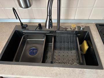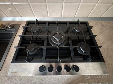 Cucina angolare in legno massello color noce 137x 300 cm Altezza piano lavoro 89cm Cappa whirpool 60 Piano cottura klarstein 5 fuochi