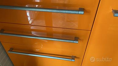 Vendo bellissima cucina laccata marca "Berloni" made in Italy. La cucina comprende i seguenti elettrodomestici: lavello (Franke), piano cottura (Rex), forno (Rex), cappa (Faber). Piano di lavoro in laminato. Lo smontaggio e il trasporto sono a carico dell'acquirente. Il frigorifero non è compreso nella cucina. Vero affare! Misure - lunghezza: 300 cm - profondità: 60 cm - altezza pensili: 96 cm Colore - armadietti: arancione - piano di lavoro: nero mélange