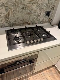Cucina 3 metri con basi laccate e pensili laminati, piano in corian con lavello a filo integrato , miscelatore con doccetta , piano cottura whirlpool 5 fuochi , tutto in ottime condizioni, vendo senza forno e lavastoviglie a € 800, condizioni ottime come da foto. Ritiro e smontaggio a carico dell’acquirente.