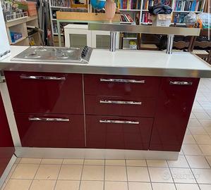 Meravigliosa e moderna cicina modulare laccata pordeaux sotto e bianca sopra, si vende con elettrodomestici compresi frigo, lavastoviglie AAA, forno Lavello e cappa (manca nelle foto). Possibilita cambiando top di montarla lineare Oppure tenerla ad angolo con penisola per la colazione.