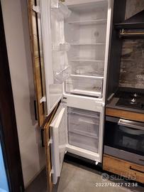 modulo colonna da 60 con freezer e frigorifero da incasso ripiano superiore. base da 90 forno da incasso parte sotto e 1 cassetto inferiore porta posate. modulo da 60 per vs lavastoviglie da incasso. modulo da 90 lavello cassettone sotto pattumiera sopra cassetto porta spugne. modulo 90 dispensa ripiano interno chiuso sui 26/30 cm.