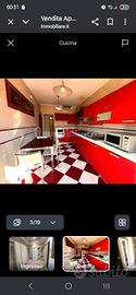 cucina angolare rossa in legno massello compresi elettrodomestici in buono stato come da foto, tavolo in vetro e sedie designer