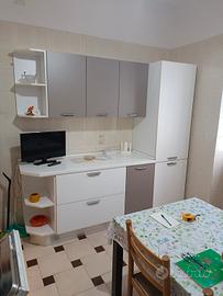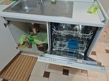 Causa ristrutturazione vendo cucina Creo Kitchen Lube poco usata e ben tenuta. È composta da due blocchi, lunghezza totale MT 4,70.Il piano cottura di cinque fuochi inox a gas, con accensione elettrica, Ignis. Forno elettrico, Indesit. Cappa aspirante acciaio, Turbo air. Lavello una vasca con gocciolatoio, compreso miscelatore. La lavastoviglie 12 coperti, Indesit A+. Il tutto è lungo MT 2 ,40. L'altro blocco, MT 2,30, con colonna frigo Whirlpool. Pensili molto capienti, cassetti ampi ed a chiusura ammortizzata.Di colore bianco e tortora. Smontaggio e trasporto a carico dell'acquirente.
