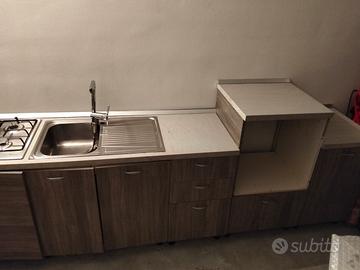 Vendo cucina acquistata da mobilificio Caputo (lunghezza 3,46, altezza 88) con piano cottura 5 fuochi inox Candy ,lavabo inox con miscelatore estraibile,cappa inox marca elica con filtro in carbonio ma adattabile anche ad estrazione all' esterno,pensile(Altezza 72, Lunghezza 60), scolapiatti (Altezza 98, Lunghezza 90).(NO forno)ma previsto di colonna forno.i cassetti sono dotati di chiusura rallentata.