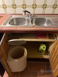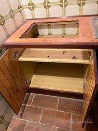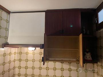 Vendo robustissima cucina in legno massiccio larghezza 210 cm, profondità 65, altezza pensili superiori 115. Sono compresi il lavandino, la cappa (no elettrica) e il rubinetto. I pensili superiori sono dotati di scola piatti. Non il solito "Mondo C.". Deve essere solo spolverata ...