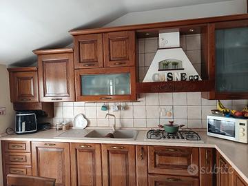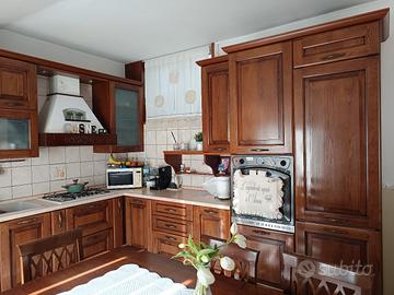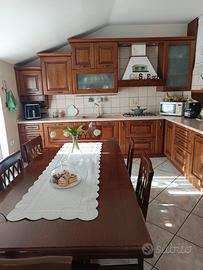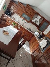 vendo x trasloco come nuova cucina legno castagno,completa di lavandino,piano cottura, frigorifero, forno valore 8.000 completo di tavolo allungabile fino a 5 metri più sei sedie