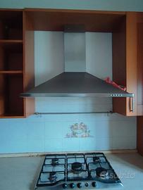 cucina ad angolo in legno color miele completa di lavastoviglie, forno, piano cottura, cappa, doppio lavello e frigorifero. Tutto in ottimo stato. Misure lato lavello 2,60, lato cappa 2,70 (il dettaglio come da foto). La cucina è stata già smontata, si trova in prov. di Ferrara.