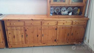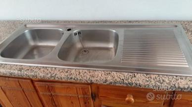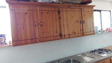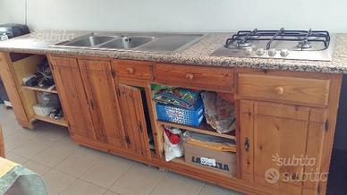 Cucina composta da: tavolo fratino 150 x 74 cm e 6 sedie, base L. 290 cm. P. 60 cm. H.87 con lavello 2 vasche e sgocciolatoio inox 120cm. Piano in granito rosa. Cucina 4 fuochi Bosch inox 60 cm. PENSILE L. 193, P. 35 H.73. Possibilità cappa in rame lavorata L. 90 cm. Predisposizione forno da 60 cm incasso e lavastoviglie L. 60 H.81 . Vetrinetta L. 115 H. 128 P. 35. Base vetrinetta L. 240 H. 87 P. 60