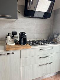 Cassetti sotto al lavandino leggermente rovinati, lavastoviglie poco usata, quindi probabilmente da ripristinare e 2 maniglie da sostituire.