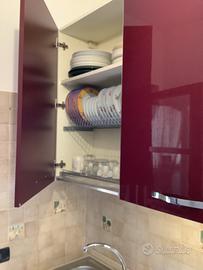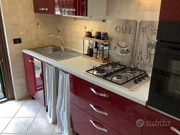 Vendo per trasloco imminente cucina lineare in buone condizioni estetiche e funzionali, bicolore Bordeaux con fianchi bianchi. Dimensioni totali: lunghezza 3,30 mt, profondità 60 cm.