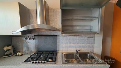 Cucina BERLONI lineare sviluppo 3 Mt. NUOVA! Laccata colore panna. Completa di forno, piano cottura 5 fuochi lavello, cappa Inox, scolapiatti, lavello 2 vasche. Basi con cassettoni scorrevoli e divisorie interne regolabili. Possibilità di trasporto e montaggio zona Ferrara
