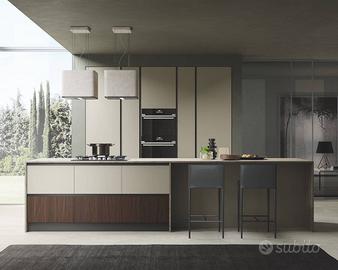 CUCINA LINEARE A TUTTA ALTEZZA CON ISOLA+COLONNE