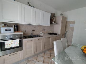 Cucina ASTRA lunghezza 3,60 metri. Bicolore con elettrodomestici Electrolux (forno, lavastoviglie, 5 fuochi, cappa e frigorifero). Il prezzo comprende anche il tavolo in vetro con gambe in metallo colore bianco 150x90 più 6 sedie. Il trasporto è a carico dell'acquirente.