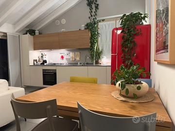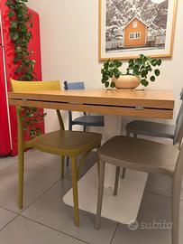 - tavolo di design Gualtiero di Miniforms con gamba centrale. 120x80 estendibile da entrambi i lati per arrivare fino a 180x80. Piano in rovere naturale perfettamente allineato con i pensili in rovere della cucina (valore nuovo 1800€, ottimo stato, vendo a 800)