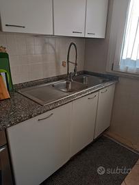 vendesi cucina lineare di m 2,60 con piano in granito e lavandino in acciaio inox senza elettrodomestici. La cucina è in buone condizioni ma può essere necessario sostituire qualche cerniera e l'anta della lavastoviglie ha un piccolo difetto in basso. Smontaggio e trasporto a carico dell'acquirente.