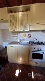 Vendesi cucina lineare usata poco in quanto installata in dependance per ospiti, in ottimo stato, marca Heral (gruppo Lube), comprensiva di forno e piano cottura a 4 fuochi entrambi Hotpoint Ariston e cappa integrata Faber. Dimensioni base: 195x90x60 Dimensioni pensili 260 x 95 (max) x 35. Tutti gli elettrodomestici indicati sono funzionanti. Visionabile senza impegno. Spese smontaggio e trasporto a carico dell'acquirente.