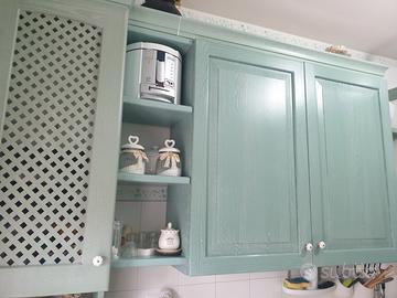 vendo cucina lineare 4.50 mt. circa verde in buono stato completa di frigo,forno,piano cottura a 4 fuochi,lavello in ceramica doppio con sgoggiolatoio, esclusa cappa. Smontaggio a carico dell acquirente disponibile da maggio €700 modena.