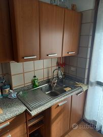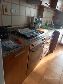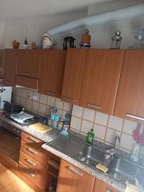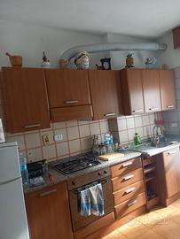 cucina lineare della NARDI, lunga circa 2,80 mt . tenuta bene , piano in VERO marmo, in foto fa l'angolo , ma può essere posizionata lineare. elettrodomestici presenti piano cottura. forno. no lavastoviglie , ma c'è predisposizione dove c'è il carrellino.