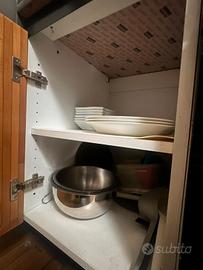 cucina lineare molto robusta. lunghezza totale 276 cm (212 top+64,5 mobile a colonna per frigo ad incasso). profondità top e mobile a colonna 59 cm. altezza mobile a colonna 212 cm. profondità pensili superiori 30 cm. top superiore dotato di 4 faretti altezza da terra 209 cm. forno elettrico funzionante, no frigorifero, cappa 4 piastre elettriche 2 non funzianti (no induzione). prezzo trattabile DIFETTI base sotto lavandino, base mobile colonna