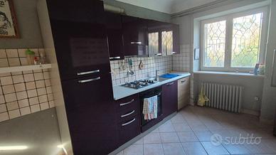 Cucina lineare con 2 elettrodomestici inclusi (frigorifero e forno elettrico statico perfettamente funzionanti), lavello a 1 vasca con sgocciolatoio, 4 fornelli con accensione elettrica.