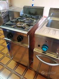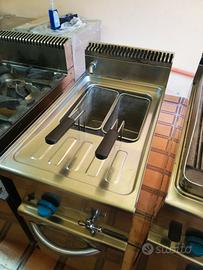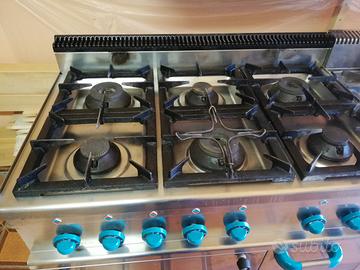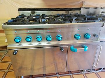 Vendo a chi realmente interessato cucina in acciaio MGM "originale" 6 bruciatori + forno integrato e 2 bruciatori separati, bollitore cuocipasta compresi cestelli capacità vasca 25/30lt. ,friggitrice due vasche separate capacità 20lt. , cappa aspirante con motore "Revisionato" come nuovo... lunghezza 2,50mt. profondità 90cm , mobilio vario (lavelli, armadietti, tavolo porta piatti ect.ect.) accessori d' arredo (porta asciugamani, portarotoli),attrezzature da cucina professionale (pentole stoviglie varie ...) causa inutilizzo Vendo .