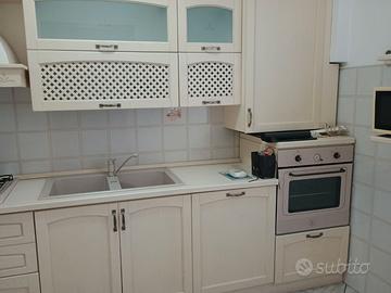 Cucina lineare con lavastoviglie SENZA frigorifero usata ma tenuta bene cm 345 circa. Dimensione del top 240 cm + dispensa laterale 45 cm + mobile forno rialzato 60 cm. Altezza pensili circa 70 cm + cornice. Completano la cucina 2 mensole da 50 x 33