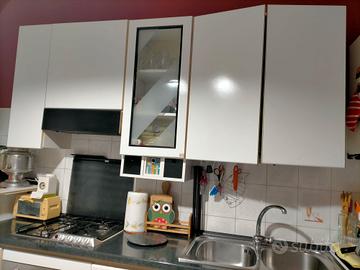 Cucina Lube di lunghezza complessiva 225,5 cm, laccata di colore bianco e nero, con top liscio in laminato effetto marmo nero di ottima qualità in perfette condizioni.
