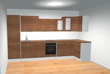 Cucina lube in legno massello (noce o ciliegio) e vetro modello cecilia lunghezza circa 4 metri con frigorifero da incasso ariston e lavastoviglie bosch (mancante dei fornelli e forno)