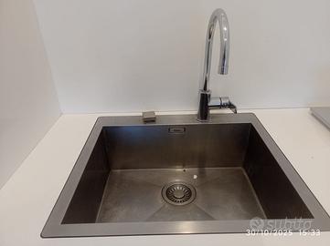 Vendo cucina angolare completa Lube. La cucina si compone come da foto, ha elettrodomestici marchio Smag (forno, piano cottura, lavatrice, frigo basso). Il lavello è Franke in acciaio. Non ha pensili ad esclusione della cappa con possibilità anche di montarla separatamente, è in acciaio marca Elica.