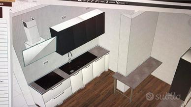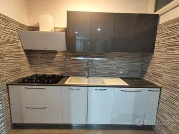 Composta da mobile con doppio lavello in resina, piano cottura e cappa