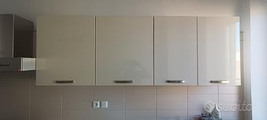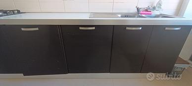 Vendesi cucina completa Lube composta di colonna forno da 90 + 3 moduli da 60 (2 elettrodomestici da incasso) + 2 moduli da 90 (fuochi + lavello), cappa e 4 pensili (2x2 ripiani + scolapiatti). Forno, cappa e fuochi in ottimo stato, elettrodomestici (lavatrice/lavastoviglie da verificare), piano in buono stato (da sistemare il lato), qualche graffio leggero - smontaggio e trasporto a carico dell'acquirente (disponibile a partire dal 15 Aprile 2026, Roma - zona Furio Camillo). Si vende in blocco completo, non disponibile vendita di parti separate. Eventualmente disponibili altre fotografie per dettagli ulteriori. Prezzo trattabile.