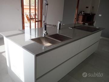 Cucina Lube con isola misure 3 x 1.20 m, con sporgenza di 30 cm per la possibilità di poter usufruire di tutta l'isola per poter pranzare.